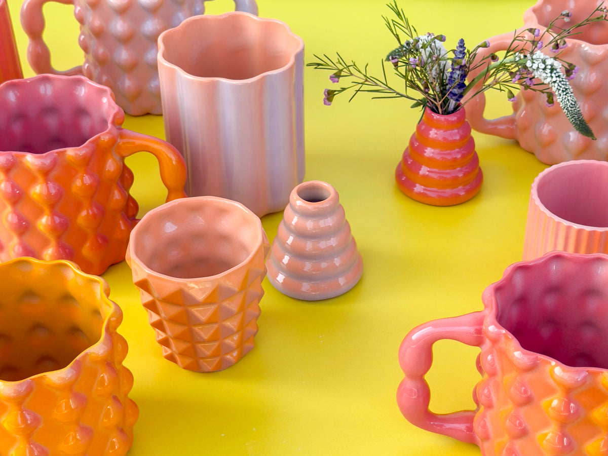 Celebrate all kinds of love - gift a bud vase to a buddy, share a cocktail with a lover, or make yourself a decadent smoothie in a smoothie cup with glass heart straw, shaped by hand. Collection drops 2/1 at 11am PST