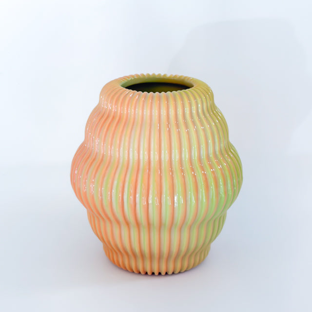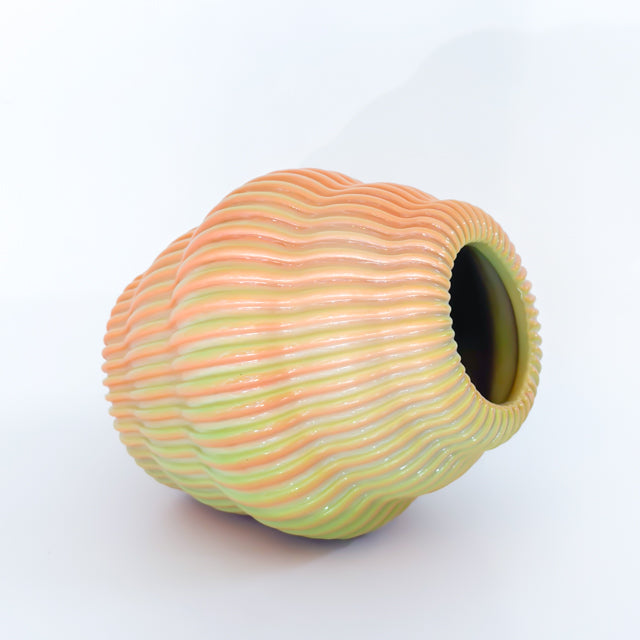 The remixed collection was created by taking my current functional designs and cutting them up and attaching them together to create something totally new. Each piece is one of a kind, and is an experiment in both shape and color, using new-to-me color combinations and special effect glazes. This project was all about play and the vases and dishes created reflect that!