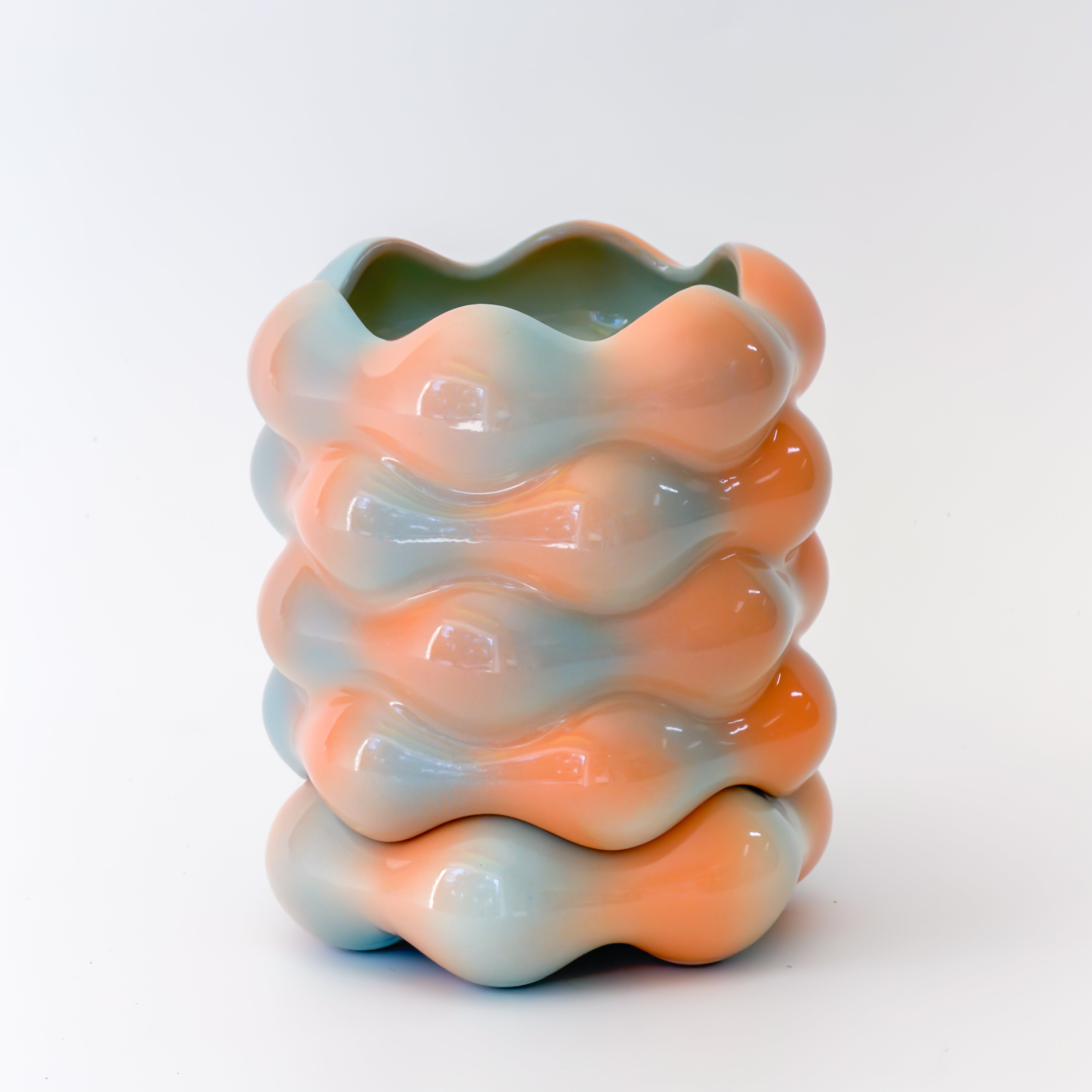 I asked ya'll to help me come up with names for this planter and it ranged from "THE GLOB" to "Nimbulus" to "George Sanderson" all of which made me SO HAPPY to read. I love asking people what they see in my work, because although my first impulse was to name it THE GLOB, the response "High Tide" made me look at the piece in a wholly different way - the texture truly does undulate and I though High Tide was a beautiful way to celebrate that! Oh also she's for your 4 inch plants and that drainage dish fits SO SNUG on the base, it's crazy satisfying. Yum.