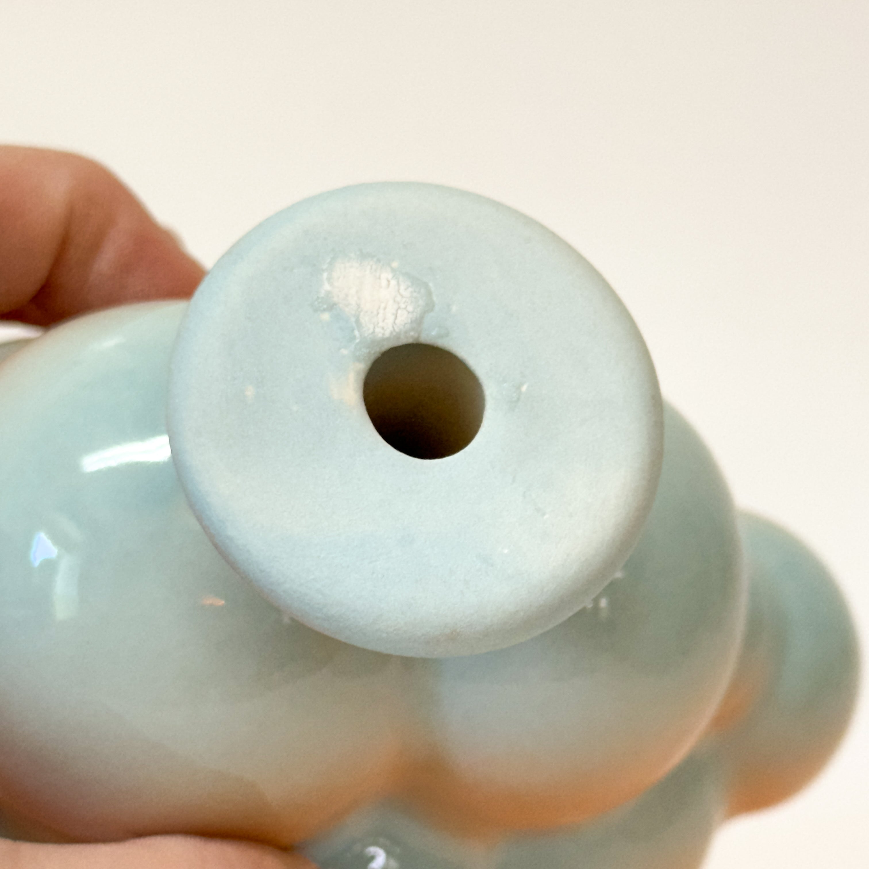 This product is a second, meaning it has a minor cosmetic flaw that is not up to my meticulous production standards. Please read the description and look carefully at the photos so you understand what the issue with the piece is. Unfortunately, I cannot accept returns on seconds or samples. This watering bell has a glaze issue on the top surface - sanded smooth but a white area remains! Otherwise, it is perfectly functional - see the second photo for a detailed view.